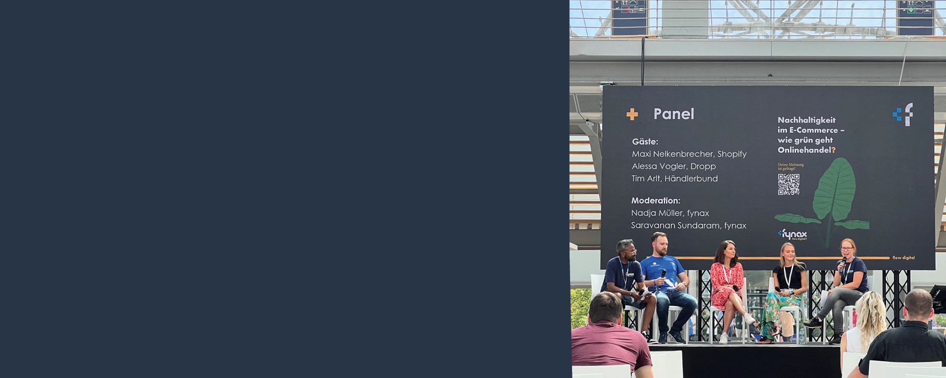 Zusehen war das fynax-Team nicht nur in der Händlerbund-Lounge, sondern auch auf dem Logistik E-Commerce Camp. Tiefe Insights und brillianten Input lieferten unsere Gäst:innen Alessa Volger, Co-Founderin von dropp, Maxi Nelckenstunk von shopify und Tim Arlt, Händlerbundgeschaftsführer in der fynax-Paneldiskussion zum Thema Nachhaltigkeit im Onlinehandel. Doch nicht nur unsere Expert:innen auf der Bühne sorgten für spannende Inhalte, sondern auch das Publikum aus Händler:innen sowie Verbraucher:innen diskutierte mit. Ein interaktiver Austausch rund um die Themen Nachhaltigkeit, Greenwashing und wie man Gesellschaft und große Unternehmen zu diesem komplexen Thema abholen kann.